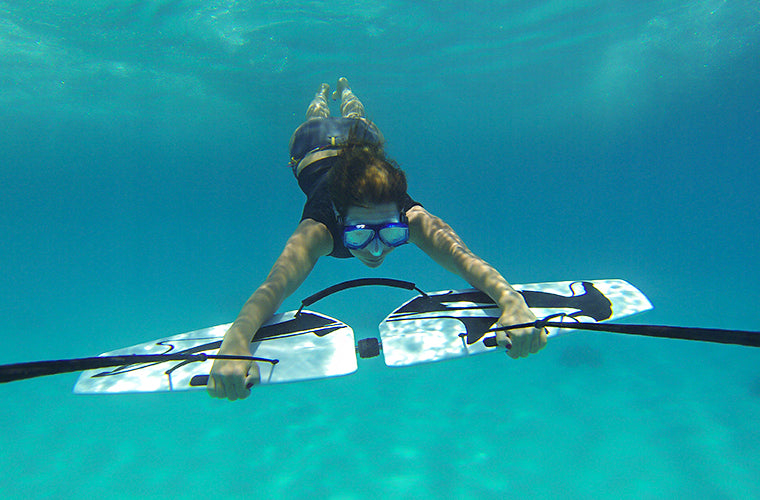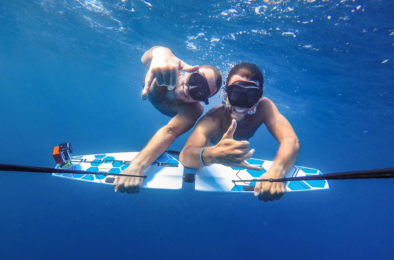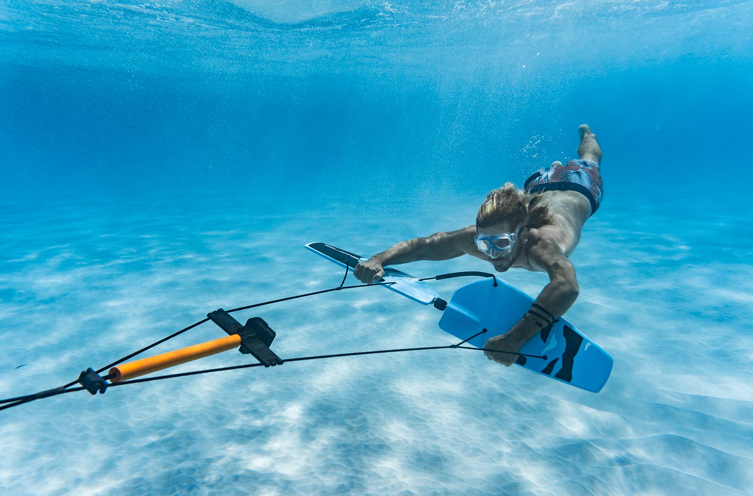 A Camera Mount for your GoPro camera that is easily attached to the Subwing ropes. Gives a centered smooth backward view of a person using the Subwing. The camera mount was created for us to shoot footage of the Subwing underwater. You can see the camera view in most of our promo videos.